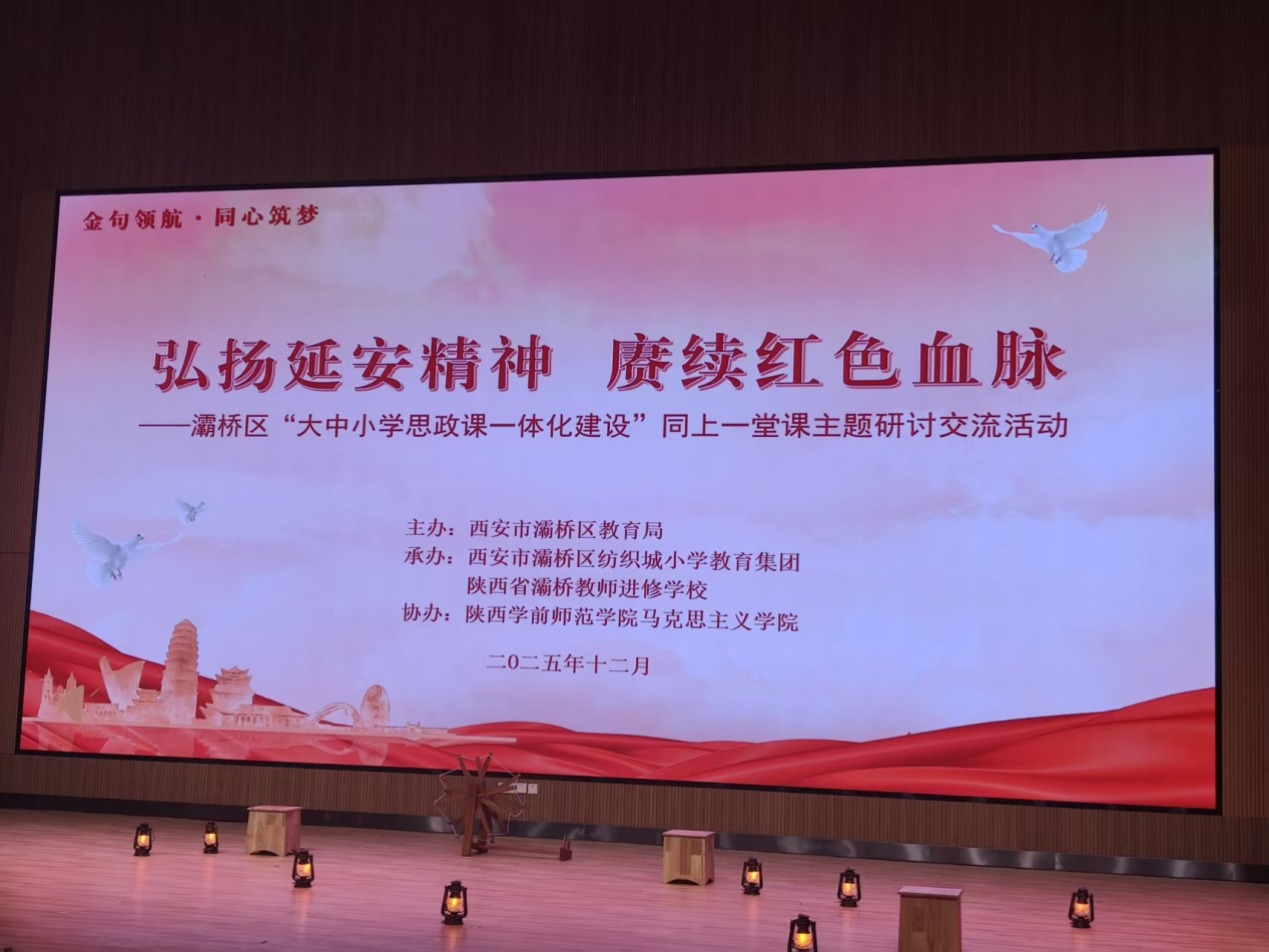 为深入弘扬延安精神、赓续红色血脉,推动大中小学思政课一体化建设走深走实,2025年12月18日,由西安市灞桥区教育局主办,灞桥区纺织城小学教育集团、陕西省灞桥教师进修学校承办,陕西学前师范学院马克思主义学院协办的“金句领航·同心筑梦——弘扬延安精神 赓续红色血脉”同上一堂课主题研讨交流活动顺利举办。